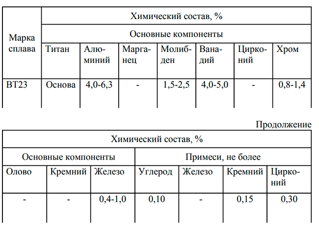 Титан марки ВТ23 — это высокопрочный сплав широкого применения, основой которого является титан (массовая доля 84-89,3%).